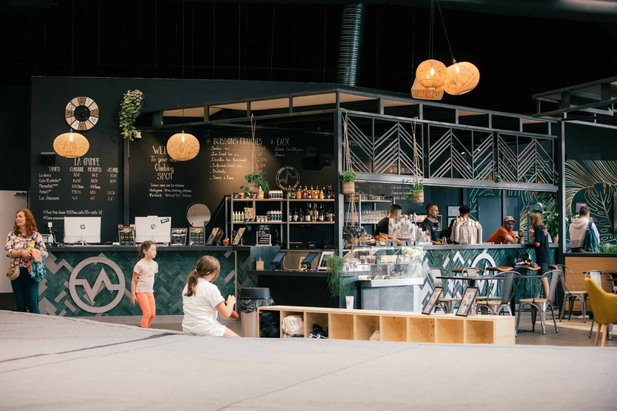 Pour reprendre des forces après votre séance ou simplement partager un bon moment, notre snack vous accueille midis et soirs dans un cadre décontracté et chaleureux. Entièrement ouvert sur les blocs, l’espace bar‑food joue sur un mélange d’acier, de bois et d’ambiance industrielle cosy — un lieu où sport et convivialité se rencontrent, à l’intérieur comme sur notre petite terrasse aménagée.